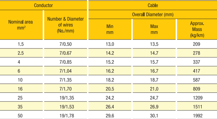 CONDUCTORCopper 1.5-50 mm2 (class 2 or Class 5) * Class 5 Conductor cables for Fixed application